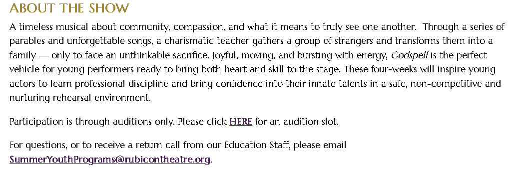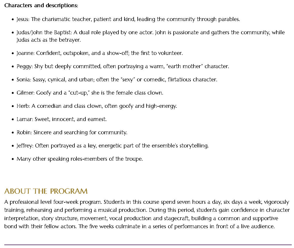 The Jack Oakie and Victoria Horne Oakie Advanced Musical Theatre Workshop |
