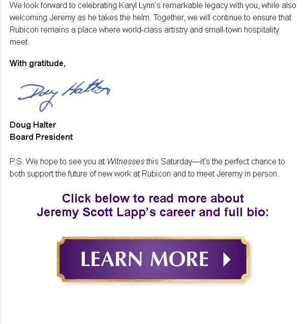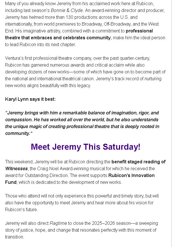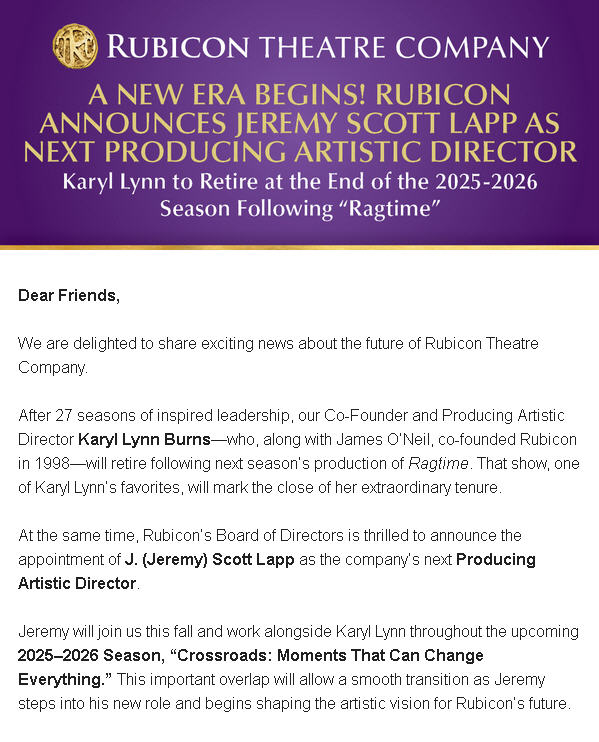 MEET RUBICON'S NEW INCOMING PRODUCING ARTISTIC DIRECTOR!!!