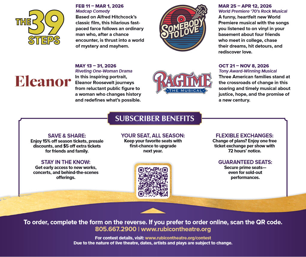Due to the nature of live theatre, artists, dates and plays subject to change without notice.
