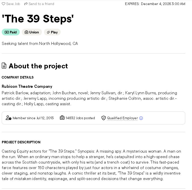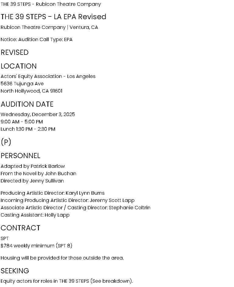 The 39 Steps (9/9/20 - 9/27/20) Play Dates Postponed - TBD