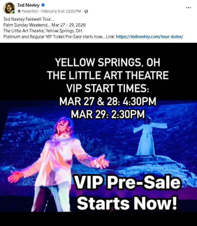 UPDATE: 3/6/23 (From Ted Neeley's Facebook Page and HERE)