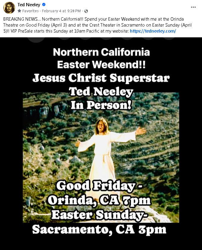 UPDATE: 4/15/20 (From Ted Neeley's Facebook Page and HERE)