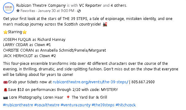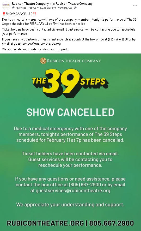 The 39 Steps (9/9/20 - 9/27/20) Play Dates Postponed - TBD