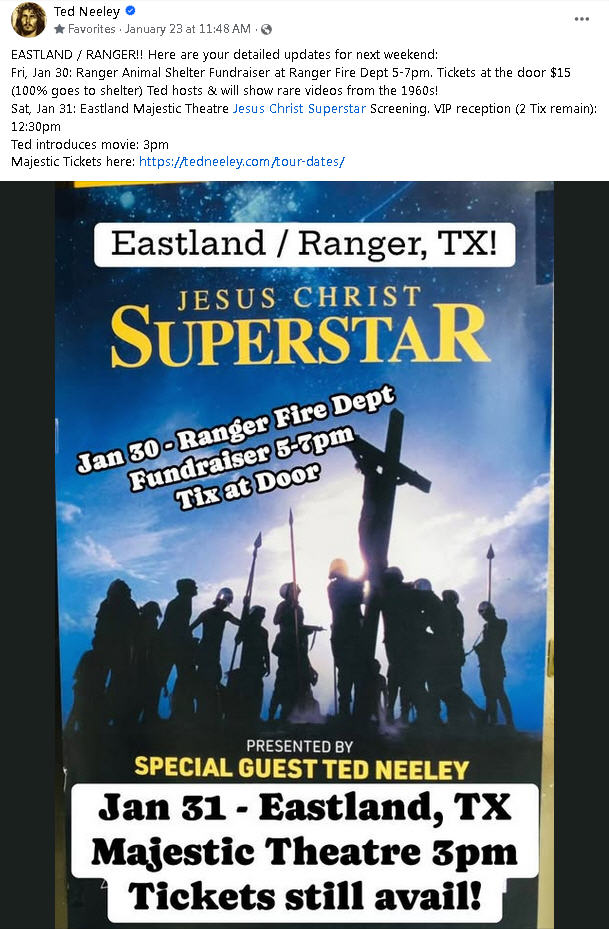 UPDATE: 10/19/19 (From Ted Neeley's Facebook Page and HERE)