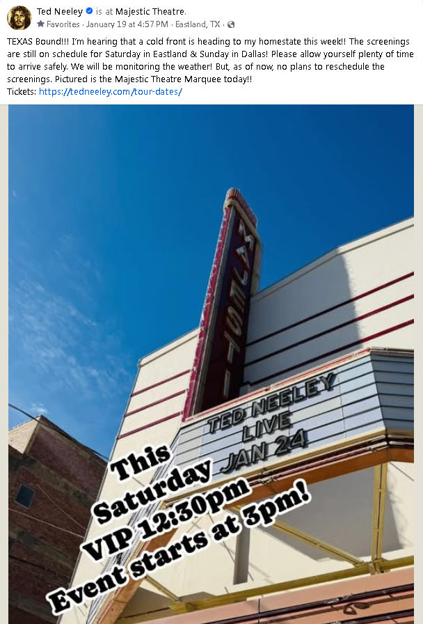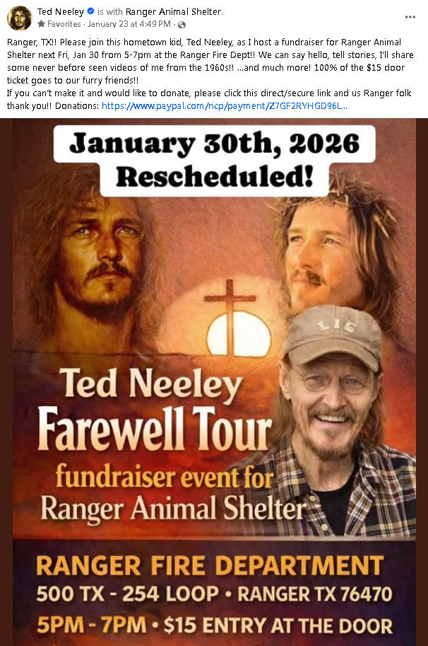 UPDATE 1/3/24 (From Ted Neeley.com and Ted's Facebook Page)
