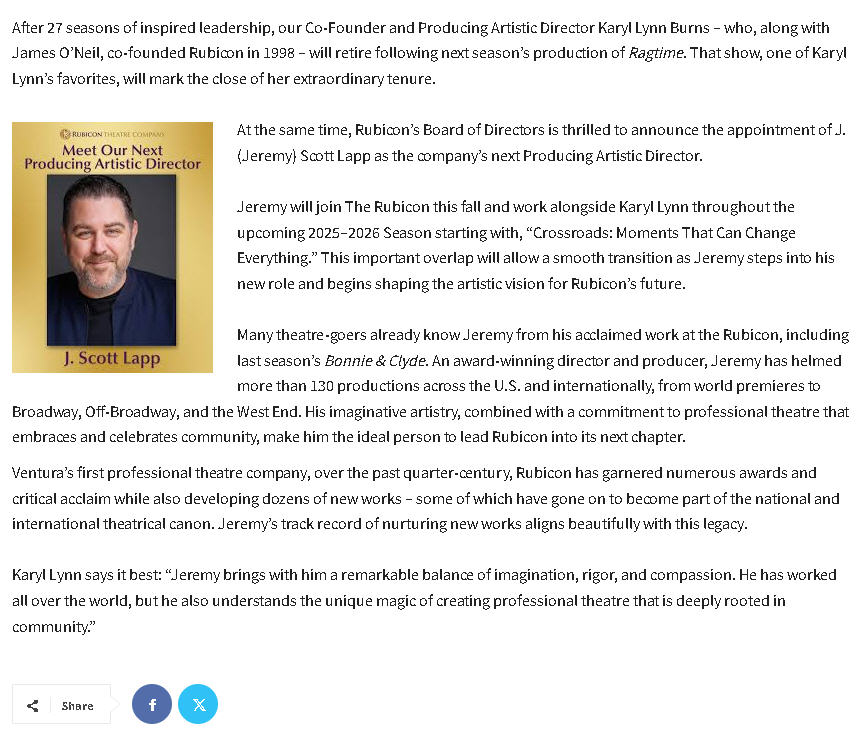 MEET RUBICON'S INCOMING PRODUCING ARTISTIC DIRECTOR!!!